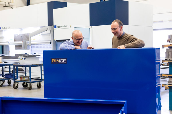 Binge Container har en egen produktionslinje i Halmstad med laserskärning, kantpress, och pulverlackering av containers. Nu flyttas produktionen till Ljungby och GLS Industries produktionsenhet GLS Henjo.